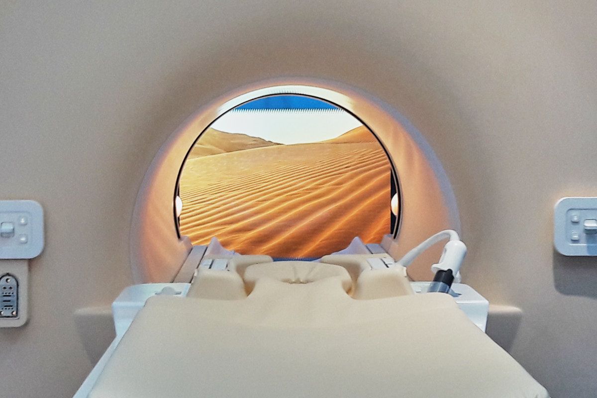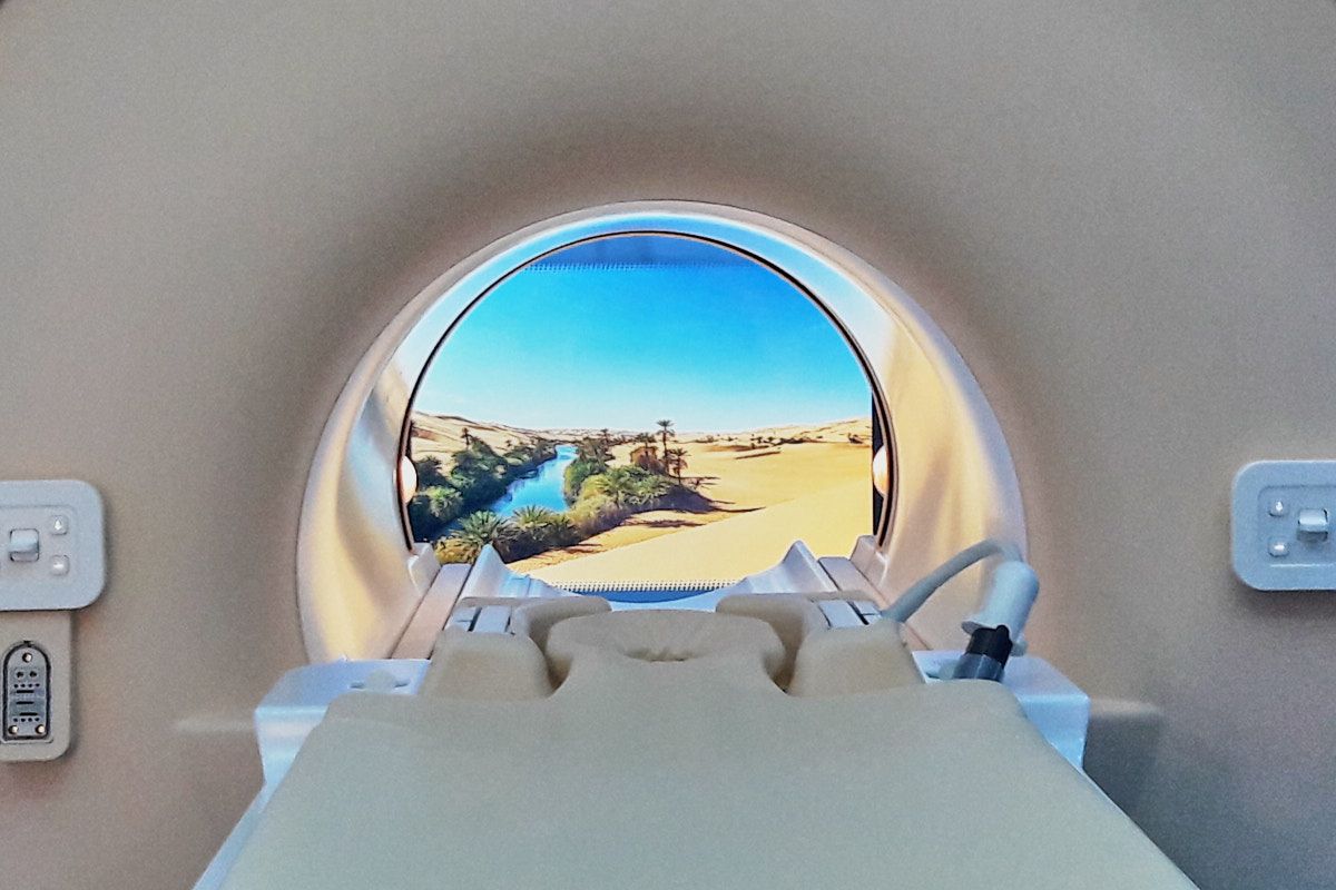 Wir bieten Ihnen eine innovative und einzigartige Lösung für dieses Dilemma. Mit einem virtuellen Dachfenster und dem neuesten Entertainmentsystem nehmen wir Ihnen die Angst vor der Enge des Raumes wobei die Röhre bereits einen komfortablen Durchmesser von 70cm aufweist. Während der Untersuchung wird Ihnen jederzeit der Fortschritt der Untersuchung in Echtzeit angezeigt. Außerdem können Sie eines von vielen Unterhaltungsprogrammen auswählen, das während der Untersuchung für Sie eingespielt werden soll.